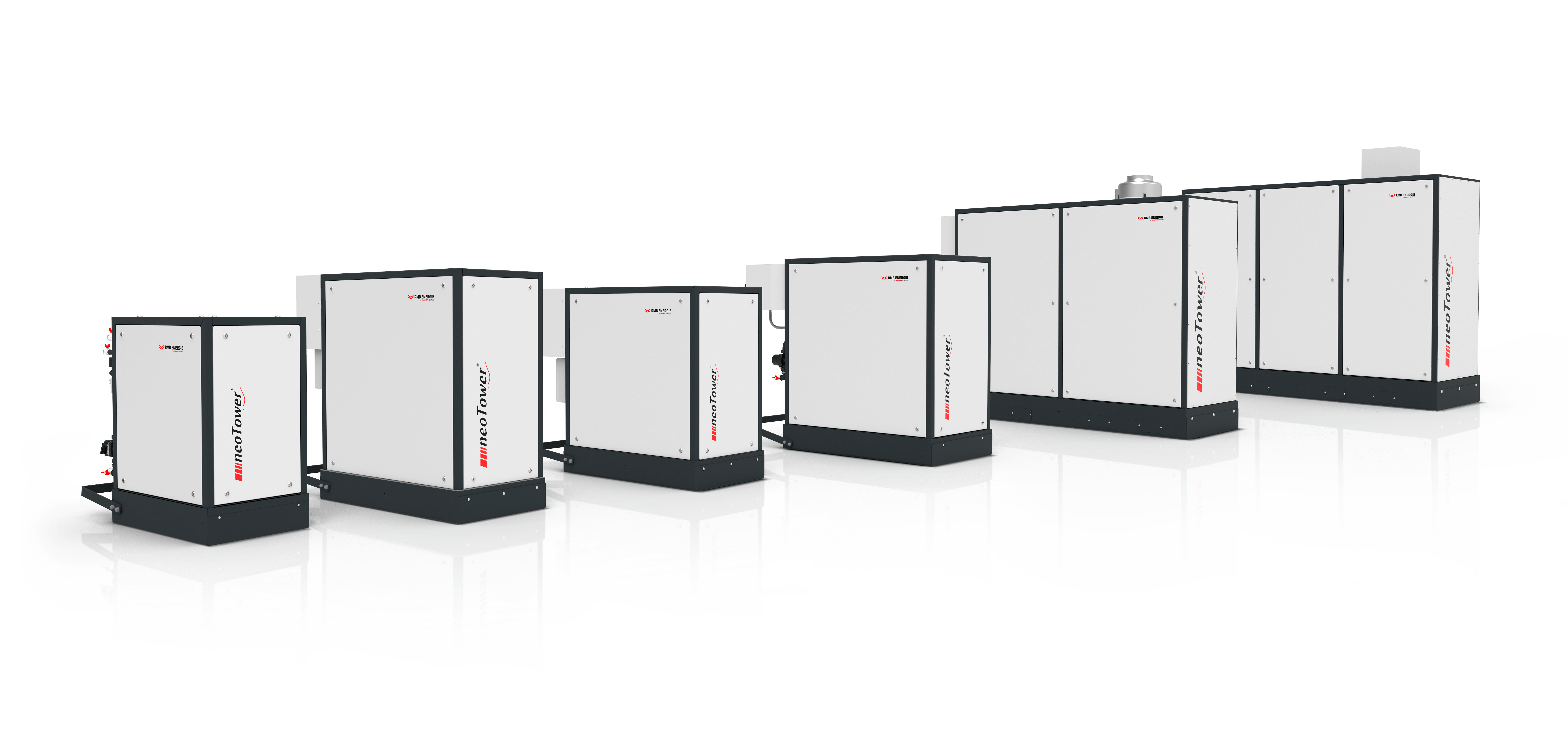 TEDOM bietet den neoTower® in 18 verschiedenen Modellen in einem Leistungsbereich von 2,0 – 71,0 kW elektrisch an. Durch die serienmäßige Leistungsmodulation um bis zu 50 % entsteht somit eine enggestaffelte und nahtlose Produktpalette.